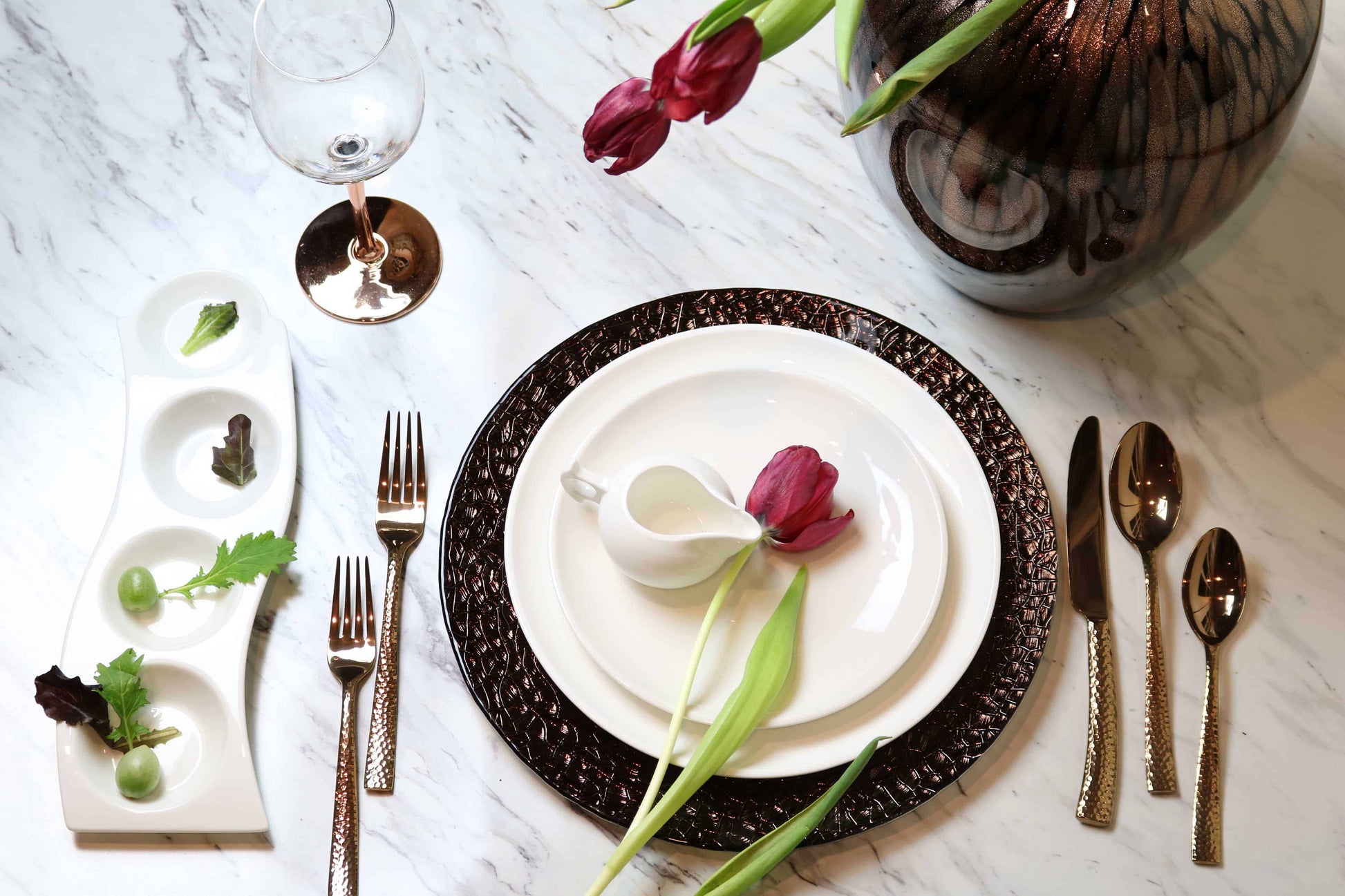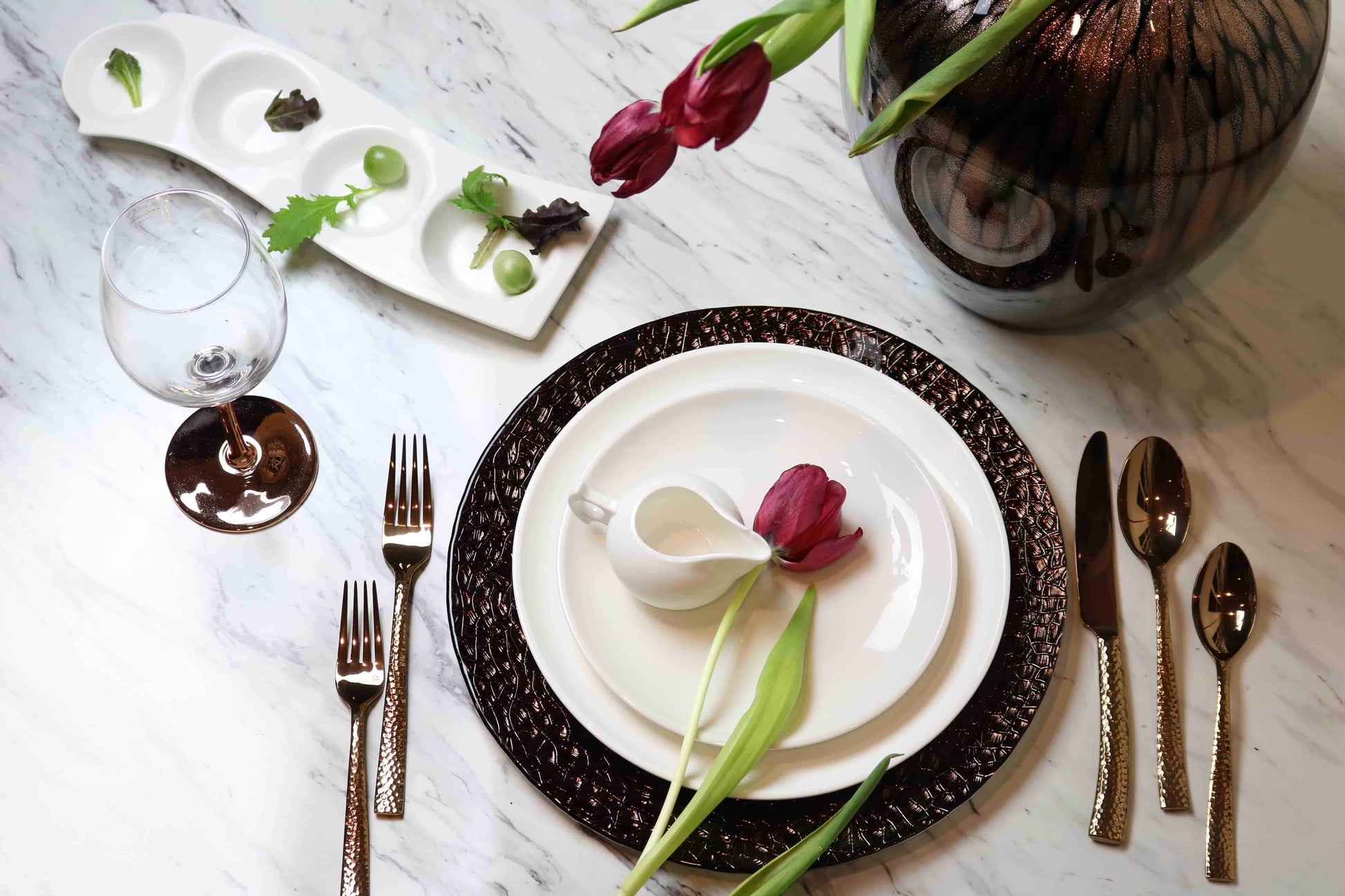 This elegant wine glass with a gleaming copper stem, is so attractive. It will add that new look to your table. Can match with rose gold and copper colored accents.