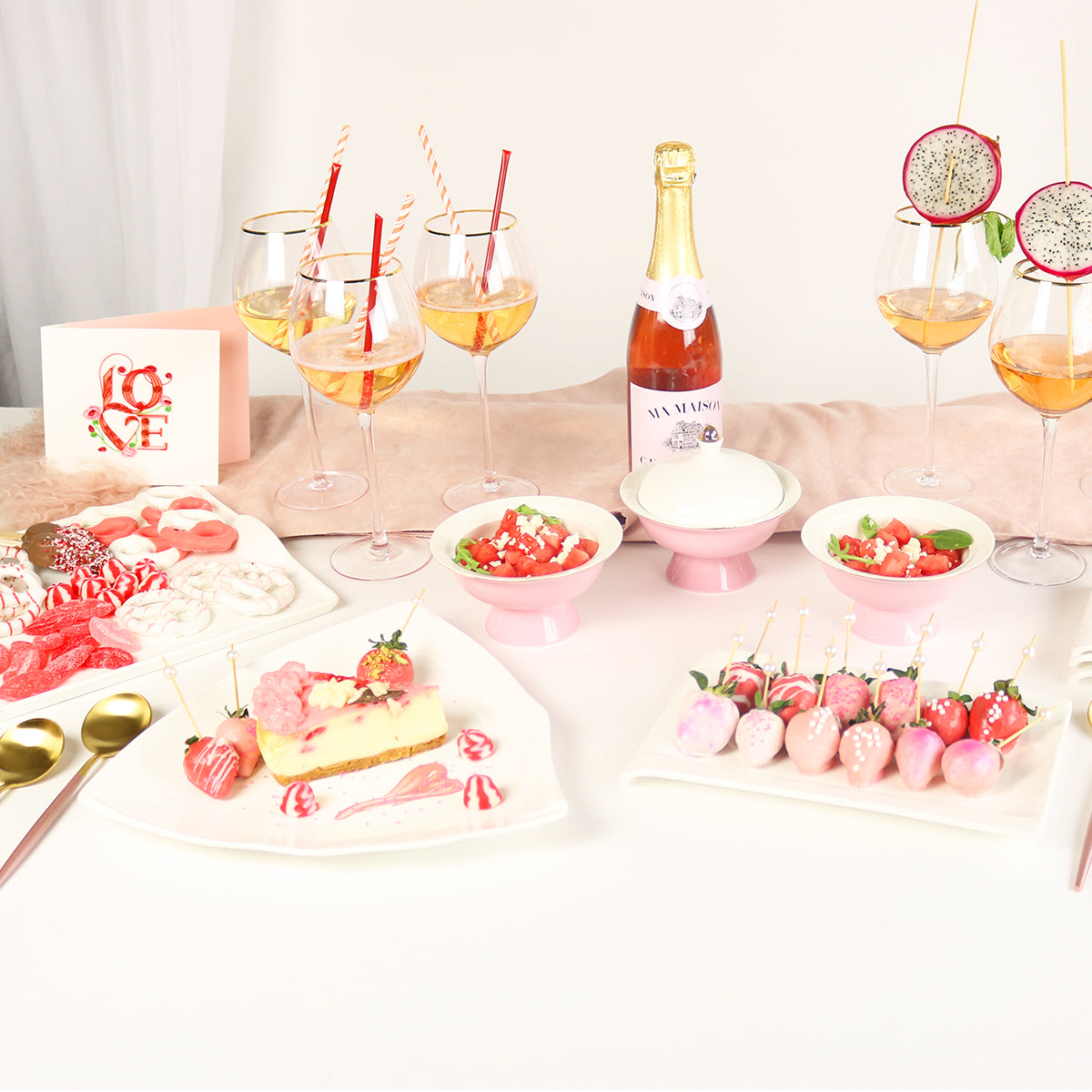 Pairs beautifully with gold-accented or pastel Valentine’s tableware